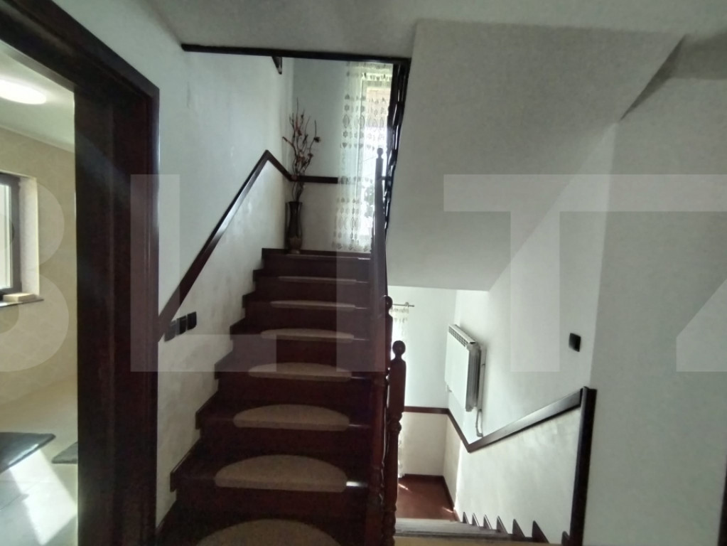 Proprietatea este împrejmuită cu gard din beton cu front stradal 28,5 m și tablă dublă pe laterale și spate, beneficiind de poartă electrică și sistem video de supraveghere. Curtea este pavata cu piatră și oferă loc pentru cel puțin 3 mașini, pe lângă garajul de la demisol. Compartimentarea este modernă și funcțională: Demisol: garaj, bucătărie deschisă, cameră pentru centrală, baie, casa scării și două spații de depozitare. Parter: dormitor, sufragerie, dressing și baie. Mansardă: patru dormitoare și o baie. Finisajele sunt de calitate superioară: tâmplărie PVC cu 3 camere, scări, parchet, uși și mobilier din lemn masiv, finisaje stucco și acoperiș Lindab. Demisolul este hidroizolat, podul izolat, iar instalațiile electrice și sanitare sunt separate pentru fiecare nivel. Un plus important îl reprezintă încălzirea în pardoseală în bucătărie și în cele 3 băi. Pe teren se află și o anexă utilă cu bucătărie de vară, beci și magazie din cărămidă, completând perfect confortul locuinței. Curtea, amenajată cu pomi fructiferi, oferă un cadru natural, relaxant și intim. Această proprietate se remarcă prin spațiu, funcționalitate și dotări moderne, fiind ideală pentru o familie care își dorește o vilă solidă, cu finisaje de calitate și teren generos. Merită vizionată! Cod ofertă / ID BLITZ: P153516 Id intern: P153516