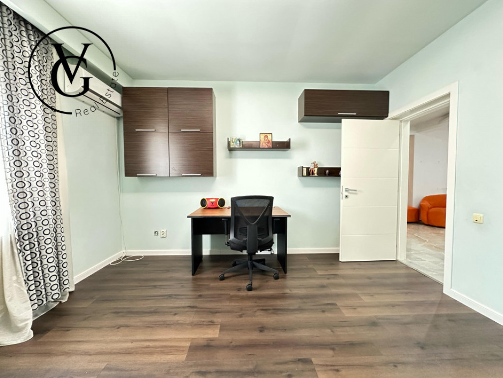 Parter: living spațios, dormitor, birou, baie, bucătărie, hol, terasă acoperită cu acces spre pivniță,