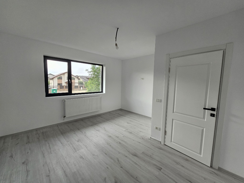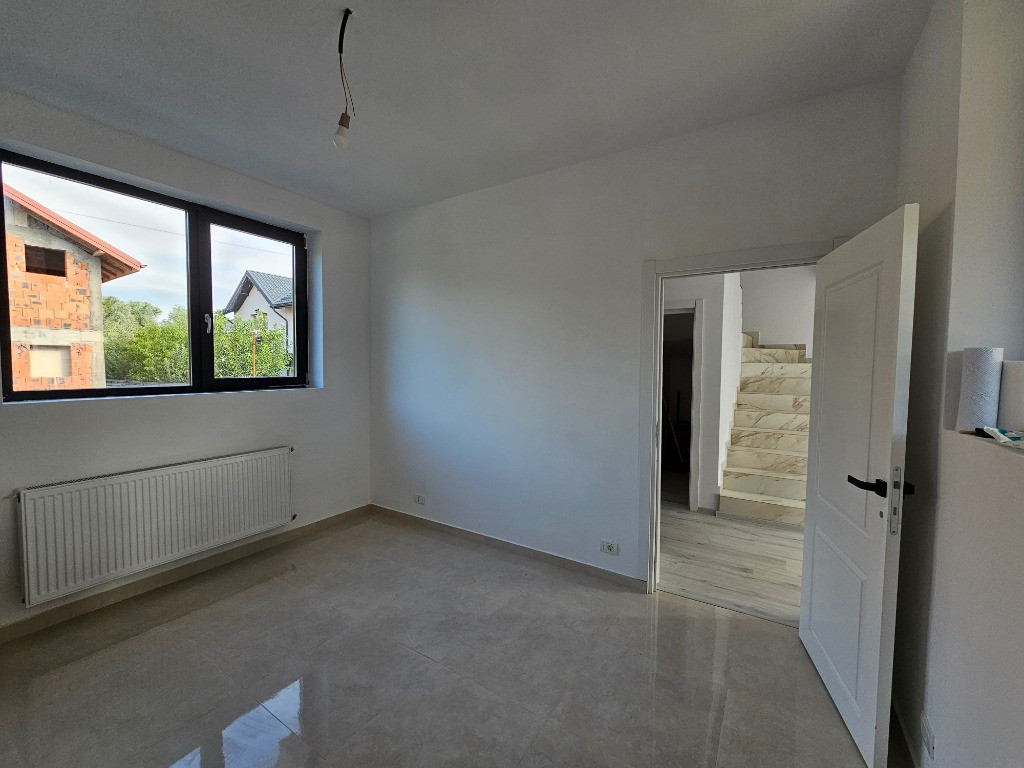 Va propun spre vanzare o vila spatioasa, tip duplex, cu suprafata totala de 125 mp si teren propiu de 150 mp, pozitionata in Comuna Berceni, pe strada Bistrita. Imobilul are regim de inaltime P+1E si este compartimentata astfel : living spatios, 3 dormitoare, bucatarie de 13 mp, 2 bai(ambele cu geam si complet echipate), hol intrare, spatiu tehnic si terasa generoasa cu acces din living. Vila se vinde complet finisata cu gresie, faianta, parchet, usi de interior, usa matalica la intrare, tamplarie PVC Deceunik 7 camere cu geam termopan, centrala termica si curte delimitata cu poarta pentru acces auto. Bransament la toate utilitatile zonei. Zona linistita! Se accepta plata prin credit bancar.