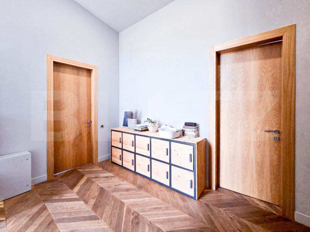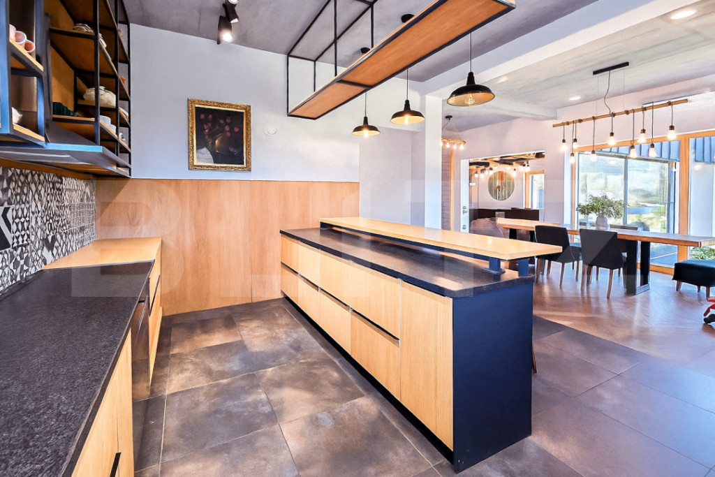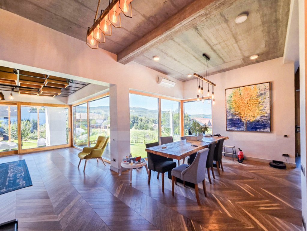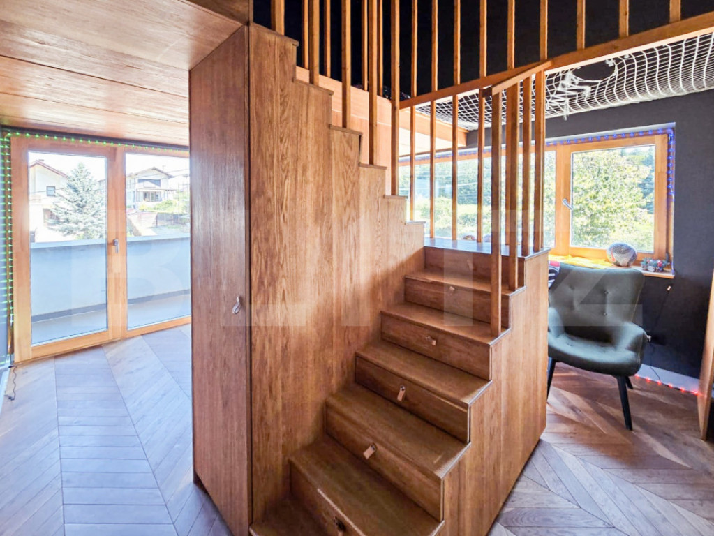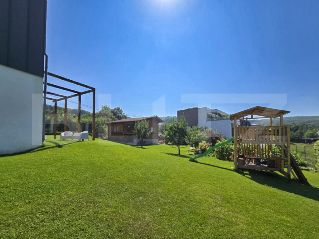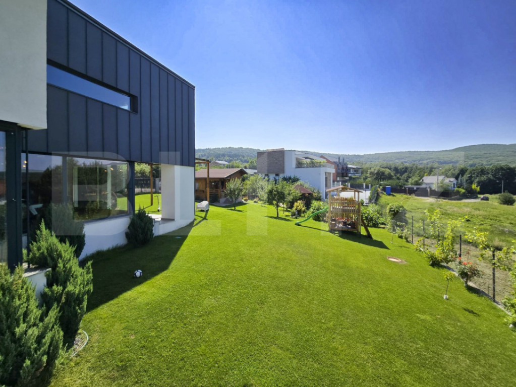 Blitz va prezinta spre vanzare o vila de lux cu panorama spre padure in cartierul Faget! Este o oportunitate unica de achizitionare a unei vile de lux intr-o locatie privilegiata din Cluj-Napoca, carierul Faget. Proprietatea impresionanta se remarca prin eleganta si confortul oferit, dar si prin privelistea spectaculoasa. Cu o suprafata desfasurata totala de 535 mp, vila se adreseaza celor ce isi doresc conditii de lux, incaperi aerisite si confort pentru toti membrii familiei. Suprafata teren - 1500 mp Structurata pe S+P+E, vila a fost finalizata in anul 2020. Detine o suprafata utila de 383 mp + 2 terase si 1 balcon. Este compusa din living, 4 dormitoare, 5 bai, garaj dublu, crama, camera tehnica, sala fittnes. Interiorul va va impresiona cu siguranta prin designul modern si finisajele de inalta calitate. Livingul spatios si luminos, prevazut cu ferestre mari, va permite sa beneficiati de lumina naturala si sa va bucurati de privelistea incantatoare a naturii. Bucataria este complet echipata si amenajata cu gust, oferindu-va tot confortul necesar pentru prepararea mancarurilor preferate. Parterul, cu o suprafata utila de 120 mp, cuprinde urmatoarele: - un hol de 17 mp; - bucataria de 17 mp, la care se adauga o camara; - zona de dining de 11.22 mp; - un birou/dormitor de 14.82; - un living de 32.73 mp. La etaj, veti gasi dormitoarele generoase si bine iluminate, fiecare cu baie proprie si spatii de depozitare inteligent integrate. Dormitorul principal se bucura de o vedere impresionanta spre padure, oferindu-va o oaza de relaxare si liniste. Etajul detine o suprafata utila de 113 mp utili si cuprinde: -hol de 8.87 mp ce decomandeaza accesul spre fiecare incapare; -dormitor de 16.17 mp cu acces pe terasa de 4.37 mp si baie proprie de 5 mp; -dormtor de 16.91 mp cu baie proprie de 4.88 mp; -dormitor matrimonial de 28.34 mp cu dressing de 18.27 mp si baie proprie de 12.66 mp, prevazuta inclusiv cu sauna; -1 terasa la dormitorul matrimonial de 12.54 mp; Demisolul vilei dispune de spatii multiple, care pot fi utilizate in functie de preferintele dumneavoastra. De la o sala de fitness sau un birou la o sala de jocuri sau o camera de cinema, optiunile sunt nelimitate. Acest spatiu generos va ofera flexibilitate si posibilitatea de a crea un mediu adaptat stilului dumneavoastra de viata. Subsolul de 150 mp este compartimentat in: - hol de 18.60 mp; - baie de 5.62 mp; - garaj dublu de 29.69 mp; - spalatorie/uscatorie de 13.84 mp; - sala fitness 22.62 mp; - crama 32.25 mp. Intreaga proprietate beneficiaza de finisaje premium, precum parchet de lemn din esenta tare in camere, placi ceramice in bai, semineu cu lemne la iesirea din living room in terasa, spatii vitrate ample acoperite cu tamplarie PVC. Vila se vinde conform fotografiilor, complet mobilata si utilata, exceptand lucrurile personale si tablourile. Incalzirea vilei se realieaza cu centrala termica proprie Hoval, prin pardoseala. Dispune si de sitem de ventilatie cu recuperare de caldura. Dispune de toate utilitatiile: apa, curent, caz si canalizare. Pentru mai multe informatii si pentru a programa o vizionare personala, va rugam sa ne contactati. Cod ofertă / ID BLITZ: P151635 Id intern: P151635