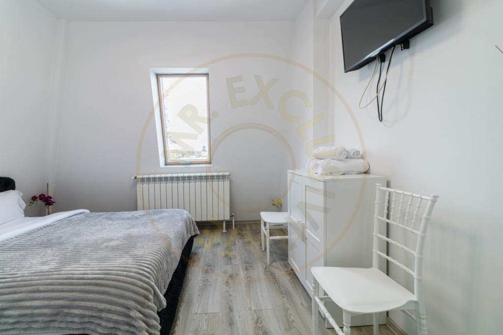 Vila spectaculoasă de vânzare în Snagov, sat Vlădiceasca, cu deschidere către lac, ponton privat și facilități rare pe piață. O proprietate mare, completă, care îți oferă atât confort de locuire, cât și un potențial real de investiție. Casa are o suprafață totală de 650 mp și o compartimentare excelentă, gândită pentru intimitate și funcționalitate. Este ideală pentru o familie numeroasă, dar și pentru activități comerciale sau turism. Ai piscină interioară și piscină exterioară. Ai terasă generoasă și vedere directă către lac. Ai ponton, un detaliu care schimbă complet stilul de viață și poziționarea proprietății. Compartimentare: Demisol: Piscină interioară. Baie. Sală de sport. Parter: Hol de acces. Living spațios. Bucătărie. 2 dormitoare, fiecare cu baie proprie. Baie de serviciu. Etaj 1: Hol. Cămară. 5 dormitoare, fiecare cu baie proprie. Mansardă: Living. 4 dormitoare, fiecare cu baie proprie. În total, ai 11 dormitoare cu băi proprii, plus zone mari de zi. Practic, casa poate funcționa perfect ca pensiune, unitate turistică, sediu de firmă, birouri, grădiniță sau after-school, fără să pierzi din confortul unei locuințe private. Localizarea este un avantaj major. Ajungi rapid în București, fiind la aproximativ 24 km de RomExpo și 25 km de Arcul de Triumf. Aeroportul Internațional Henri Coandă se află la aproximativ 14 km, ceea ce face proprietatea potrivită și pentru clienți care călătoresc frecvent. Dacă vrei o vilă mare, pe lac, cu piscină interioară, piscină exterioară și ponton, aceasta este una dintre puținele opțiuni reale din Snagov care bifează tot. Id intern: P7923