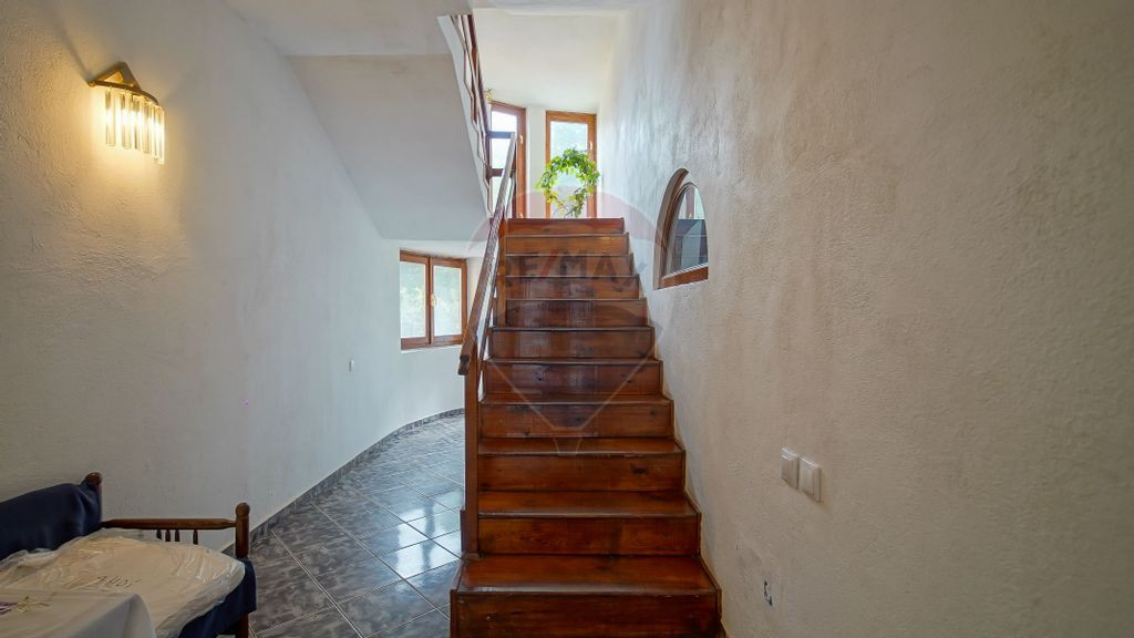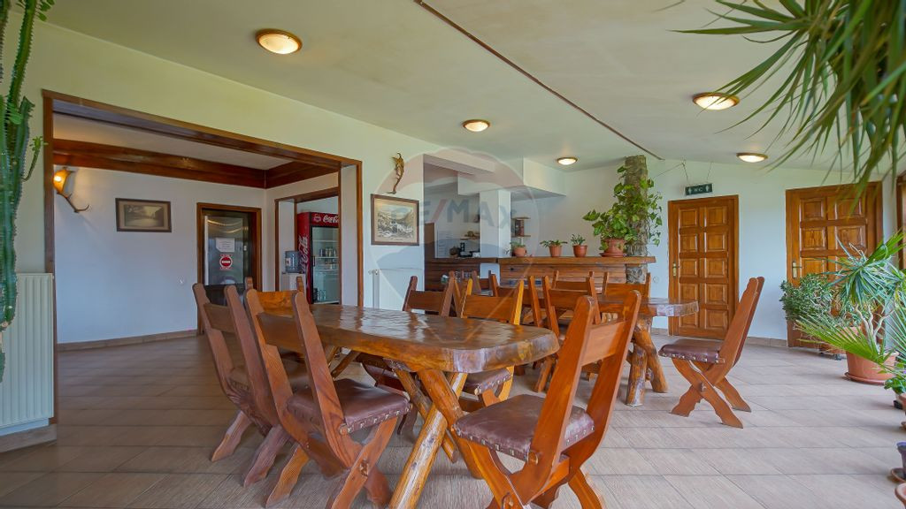 Casa de vacanță perfectă pentru familia ta Cu 878 mp utili și o curte de 1.404 mp, această vilă oferă spațiu amplu și intimitate pentru o familie numeroasă. Livingul de mari dimensiuni, camerele multiple, terasele și balcoanele creează locul ideal pentru relaxare, petreceri de familie și momente speciale în natură. Proximitatea față de stațiune îți oferă acces la pârtii de schi, restaurante și trasee montane, dar și liniștea unei zone exclusiviste. Într-o locație de excepție, la intrarea în stațiunea turistică Poiana Brașov, pe strada Valea Soarelui nr. 15, se află această vilă impunătoare, construită în anul 2002. Proprietatea este concepută în stil rustic-vânătoresc, combinând piatra, lemnul și detaliile tradiționale cu funcționalitatea unei construcții solide și generoase. Este o oportunitate rară, fie pentru cei care doresc să își creeze o reședință de vacanță spectaculoasă, fie pentru investitori interesați de un spațiu cu potențial turistic ridicat. Detalii tehnice Teren: 1.404 mp intravilan Suprafață utilă: 878 mp Suprafață construită desfășurată: 1.091 mp Suprafață construită la sol: 280 mp Regim de înălțime: S+P+E+M Construcție: cărămidă (mansarda din lemn) Ferestre: termopan cu ramă de lemn Încălzire: centrală termică pe lemne Utilități: curent trifazat, apă, canalizare Clasă energetică: B Compartimentare Demisol: spațiu centrală termică, spălătorie, 2 camere, holuri de acces, WC, garaj, 2 beciuri. Parter: living spațios, birou, bucătărie, 3 camere, windfang, holuri, grupuri sanitare, baie. Etaj: 4 camere, 4 băi, grup sanitar, bucătărie, cămară, holuri generoase, casa scării. Mansardă: 9 camere, 5 băi, hol, casa scării. Localizare Vila beneficiază de o poziționare excelentă, chiar la intrarea în Poiana Brașov, una dintre cele mai căutate destinații montane din România. Proprietatea este amplasată lângă Complexul Monterai și Restaurantul Sergiana – Stâna, la doar 1,6 km de pârtia Bradul. Zona dispune de parcare publică, acces facil și priveliști spectaculoase spre pădure și munte. Potențial Turism – compartimentarea și suprafața permit transformarea imediată într-o pensiune boutique, un chalet de lux sau spațiu de închiriere pentru grupuri. Poziția strategică și proximitatea pârtiei asigură un grad ridicat de ocupare pe tot parcursul anului. Reședință privată – vila este ideală pentru o familie numeroasă care dorește confort, intimitate și spațiu generos. Terasele și balcoanele multiple, curtea de peste 1.400 mp și stilul rustic creează cadrul perfect pentru o viață liniștită și conectată cu natura. Sediu reprezentativ – prin suprafețele mari și compartimentarea flexibilă, proprietatea se pretează și pentru activități de protocol sau destinații corporate.