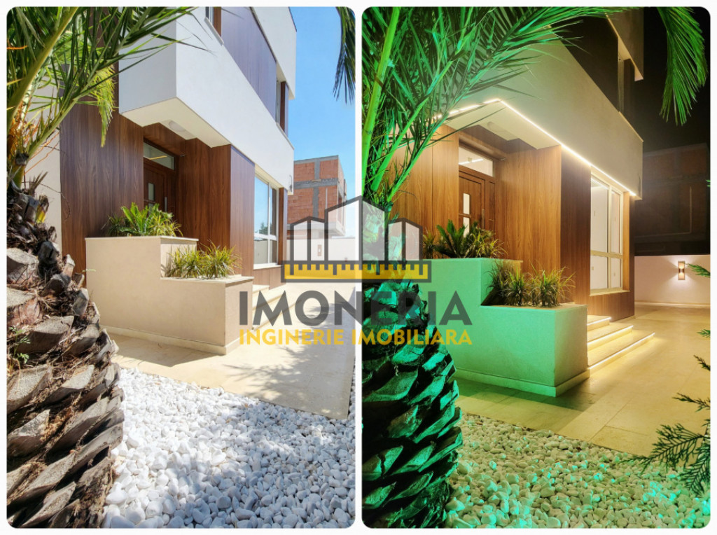 Vila din galeria foto, finalizata in 2025, poate fi solutia cautarilor tale. Arhitectura Mediteraneana si peisagistica au fost armonizate in asa fel incat sa te simti ca in vacanta de fiecare data cand ajungi acasa. Iar piscina exterioara iluminata RGB, impreuna cu iluminatul arhitectural, prezent atat pe fatada, cat si in curte, completeaza peisajul mai ceva ca la "Insula Iubirii". :p