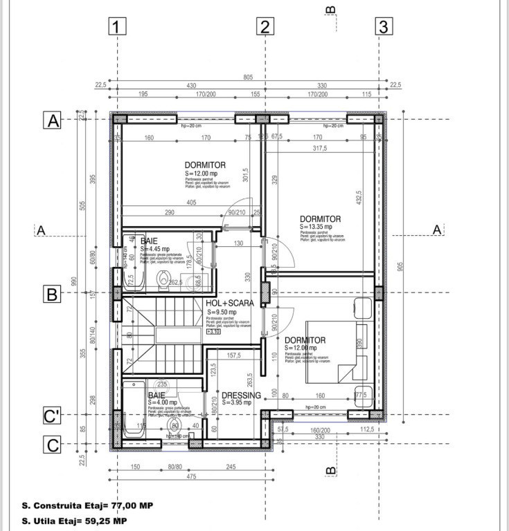 Suprafață teren :325 mp Strada asfaltata la 50 m Compartimentare dormitoare : Parter dormitor 10.65 mp Etaj dormitor 12 mp dormitor 12 mp dormitor 13.35 mp 3 Grupuri sanitare din care unul in dormitorul matrimonial Dressing in dormitorul matrimonial Living generos Bucătărie spatioasa Utilitati : Gaze naturale Curent electric Apa (put forat ) Fosa ecologica Pentru mai multe detalii si pentru a programa o vizionare ma puteti contacta Consultanță financiară si suport in vederea obținerii finanțării