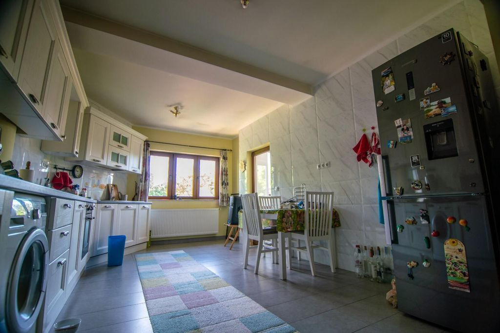 Vila P+1+M +Terasa 30 mp inchisa,2 bucatarii +4 bai, 5 camere,1 balcon,curte pavata cu pavele,2 locuri parcare,,acoperis tigla,anvelopata,vopsita cu lavabila structurata,centrala termica,2 ideala pentru locuit .