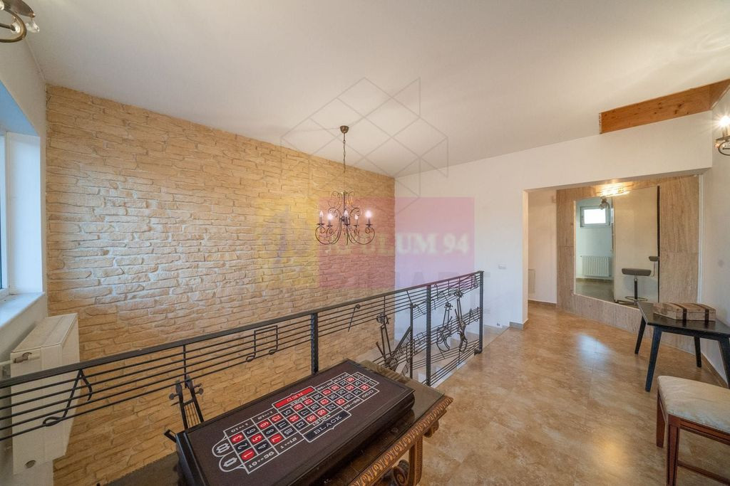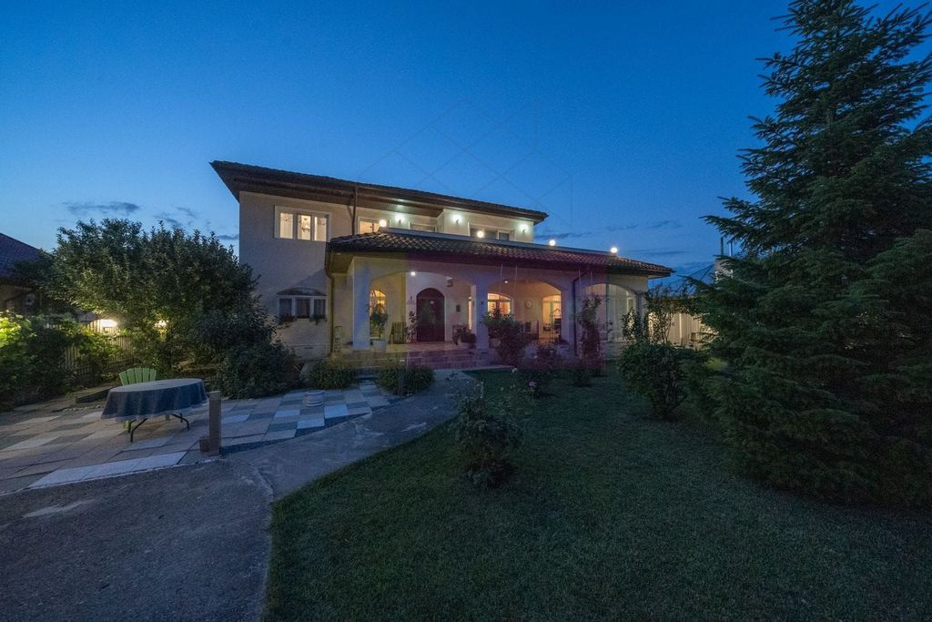 COMISION 0. Compania Imobiliara Apulum 94 va propune spre vanzare o vila deosebita P+1+pod , situata in Saftica, in imediata apropiere a localitatii Corbeanca, intr-o zona nou dezvoltata, exclusiv de vile, caracterizata prin verdeata abundenta , aer curat si multa liniste - - o adevarata oaza de relaxare. Proprietatea este amplasata pe un teren de 704 mp , la capatul unui drum de servitute cu acces limitat, care se inchide chiar in aceasta proprietate, oferind intimitate si confort sporit. Caracteristici generale: - arhitectura moderna, eleganta -suprafete vitrate mari- lumina naturala excelenta - racordata la toate utilitatile: curent electric, gaze, apa, canalizare. -constructie solida pe stalpi de beton cu zidarie din caramida - placi de beton peste fiecare nivel, inclusiv peste etaj - izolatie exterioara cu polistiren de 10cm, -acoperis cu tigla ceramica Spania- Escandella -finisaje si dotari premium -Tamplarie PVC Veka -parchet triplu stratificat -marmura in toate baile, gresie Spania, granit -piatra naturala in living, peretele scarii si holul etajului -usi interioare din lemn productie Franta culoare alba -incalzire electrica prin pardoseala in baile de la parter si etaj -centrala termica Bosch in condensare -32KW - 4 aparate de aer conditionat - sistem de securitate BGS -distribuitoare separate pentru apa menajera si incalzire( parter si etaj) -put propriu( 40 m adancime) pentru apa menajera si irigarea gradinii -curte amenajata impecabil cu brazi maturi, pomi fructiferi si flori -anexa pentru depozitare -zona de gratar -bucatarie exterioara acoperita si complet functionala , ideala pentru petreceri si evenimente Se preda intreaga documentatie tehnica a imobilului ( structura, instalatii, autorizatii) Vila se vinde partial mobilata , cu bucataria complet mobilata. Se accepta schimb cu o proprietate mai mica +diferenta de pret. Compartimentarea este excelent gandita astfel: Parter= living spatios+ dormitor+bucatarie+baie+ camera tehnica +hol+ terasa generoasa de 48mp Etaj= dormitor matrimonial cu baie proprie si dressing+dormitor secundar+baie+balcon+terasa foarte mare de 47mp Pod inalt cu posibilitate de amenajare mansarda Acces rapid catre puncte de interes: Hypermaketuri( Carrefour, Kaufland, Lidl, Mega Image, Hornbach) la 2 km/3 minute; Centura A0 la 3,5 km/ 4 min; DN1 la 350 mp/ 1min; Therme la 4,5 km/6 min; Aeroportul Otopeni la 7,1km/ 10 min; Baneasa Shopping City la 14km/ 17 min; Scoli, gradinite, after scholl pe o raza de 5 km; farmacii la 2km/ 2min; Serviciu Ambulanta la 1,2 km/2 min; Spitalul Agrippa Ionescu la 4,5 km/ 11 min; Universitate- KM0 la 22 km/ 30-35 min. Pentru vizionari si mai multe detalii nu ezitati sa ma contactati pe nr 0733683446- Laura Ionescu.