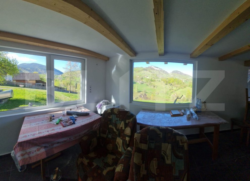 Vila superbă tip pensiune în zona montană Măgura – 28 km distanta pana la Brasov , o oază de liniște și natură! Situată la doar o oră de mers cu mașina, în inima unei zone cu potențial turistic ridicat, această vilă deosebită vă oferă confort, spațiu și o priveliște spectaculoasă către munți. Proprietatea dispune de 6 camere luminoase, 5 băi, un living generos cu vedere panoramică și acces facil către cele mai cunoscute atracții din zonă, precum Peștera Liliecilor, Manastirea de la Pestera și numeroase trasee montane. Terenul aferent este intravilan, în suprafață de 2000 mp, intabulat ca „curți construcții”, oferind posibilitatea extinderii sau construiri altor unități. In zona magazin , autobuz scolar pentru transport copii. Pe timp de iarna drumul se dezapezeste . Drum bun pana la casa, Construită din bârne de lemn și beton, cu fundație solidă de 1 m, vila beneficiază de izolație completă, interior si exterior ,pod, beci, cameră tehnică, apă trasă de la izvor, curent electric și fosă ecologică modernă. Acoperișul este realizat din tablă tip Bolka de 0,6 mm. Termopane de ceea mai buna calitate . Vila nu este mobilată, fiind disponibilă exact ca în poze – gata pentru personalizare sau investiție turistică. Vă așteptăm cu drag la vizionare! Cod ofertă / ID BLITZ: P144682 Id intern: P144682
