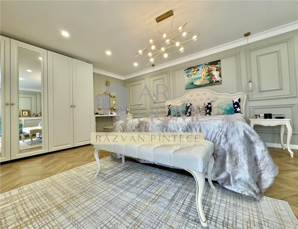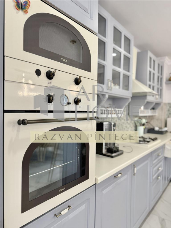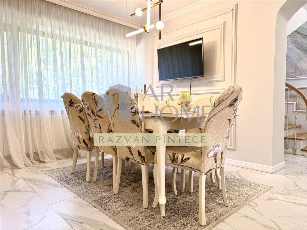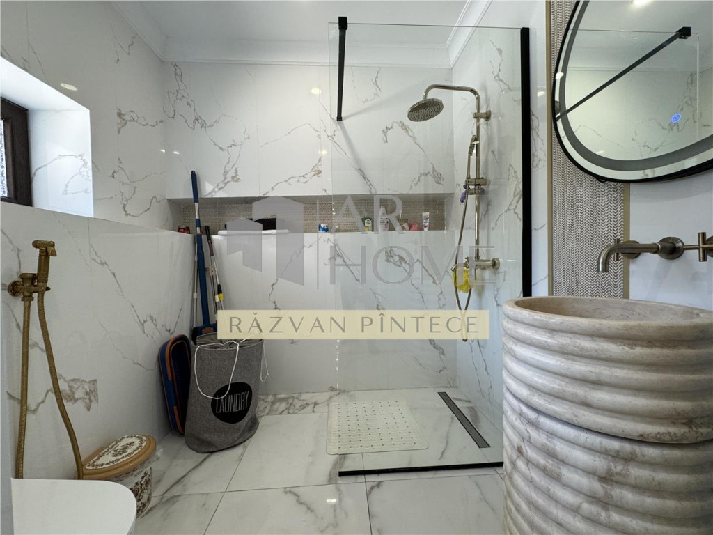 Va propunem spre inchiriere o vila eleganta amenajata cu bun gust si rafinament, aflata intr-o zona linisista, fara trafic rutier, dar totusi in apropiere de centrul orasului Ploiesti. Imobilul este structurat P 1E M, finalizat in anul 2020. Suprafata utila este de 217,68 mp 20,89 mp balcoane si terasa, construita 308 mp. Este compartimantata astfel: Parter - camera de zi cu bucatarie open space si dining, baie, hol, terasa, camera tehnica; Etaj - dormitor matrimonial cu dressing, baie proprie si balcon, dormitor secundar cu baie proprie si balcon; Mansarda - zona de relaxare, dressing, dormitor cu baie proprie. Terenul este in suprafata de 670 mp cu deschidere 12 ml, imprejmuit cu gard. Atentia la finisaje este deosebita, lucrandu-se doar cu materiale de calitate. Dispune de urmatoarele imbunatatiri si finisaje: - placari cu marmura, gresie si faianta Porcelanosa - parchet triplustratificat - usi interior MDF Porta Doors - tamplarie PVC cu geam termopan tripan culoare wenge - incalzire in pardoseala la parter - radiatoare aluminiu pe elementi la etaj si mansarda - contorizare separata pe fiecare nivel - 2 centralte termice prin condensare; panouri solare Pentru a va convinge de frumusetea acestei case, va asteptam la vizionare! Se inchiriaza la pretul de 2000 EURO, lunar, plus garantie.
