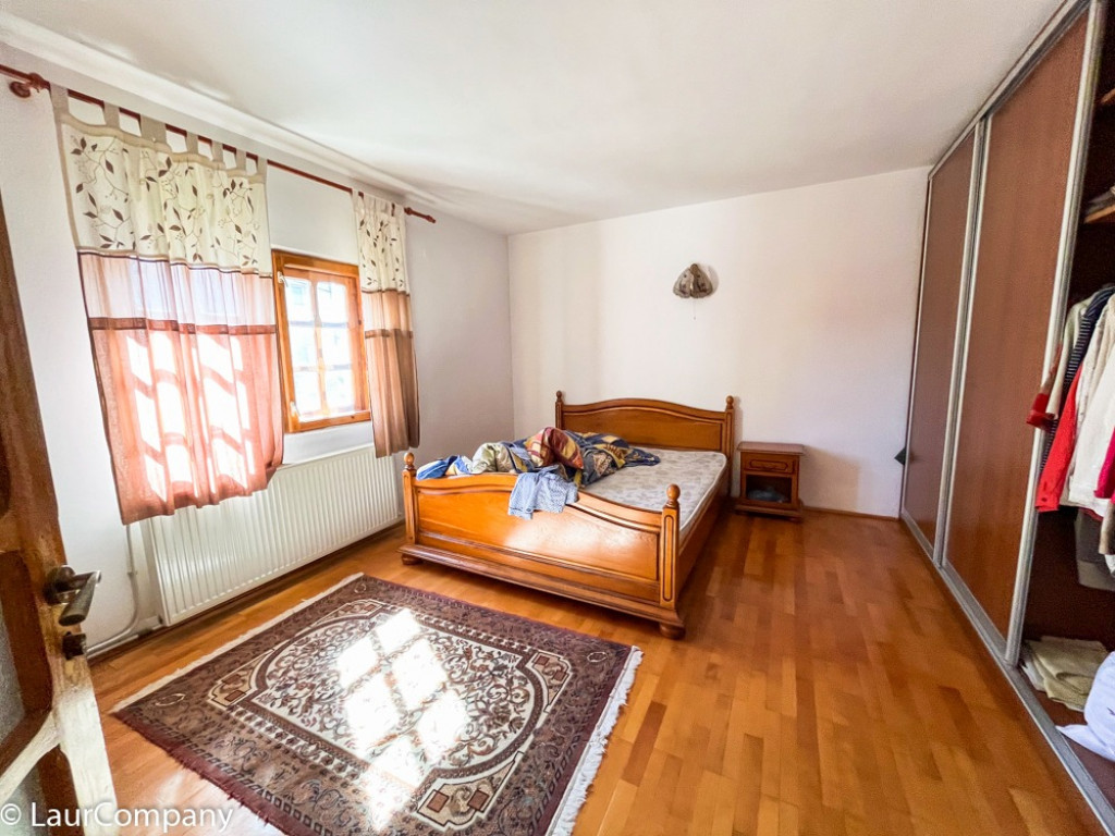 Casa este construita in anul 2000 pe o suprafata de 855 mp teren avand deschidere de 33 m, constructie caramida , tamplarie lemn masiv , parchet lemn masiv , centrala termica pe fiecare nivel ,scara interioara cat si scara exterioara cu posibilitatea de a locui doua familii , curte frumos amenajata , garaj gard .
