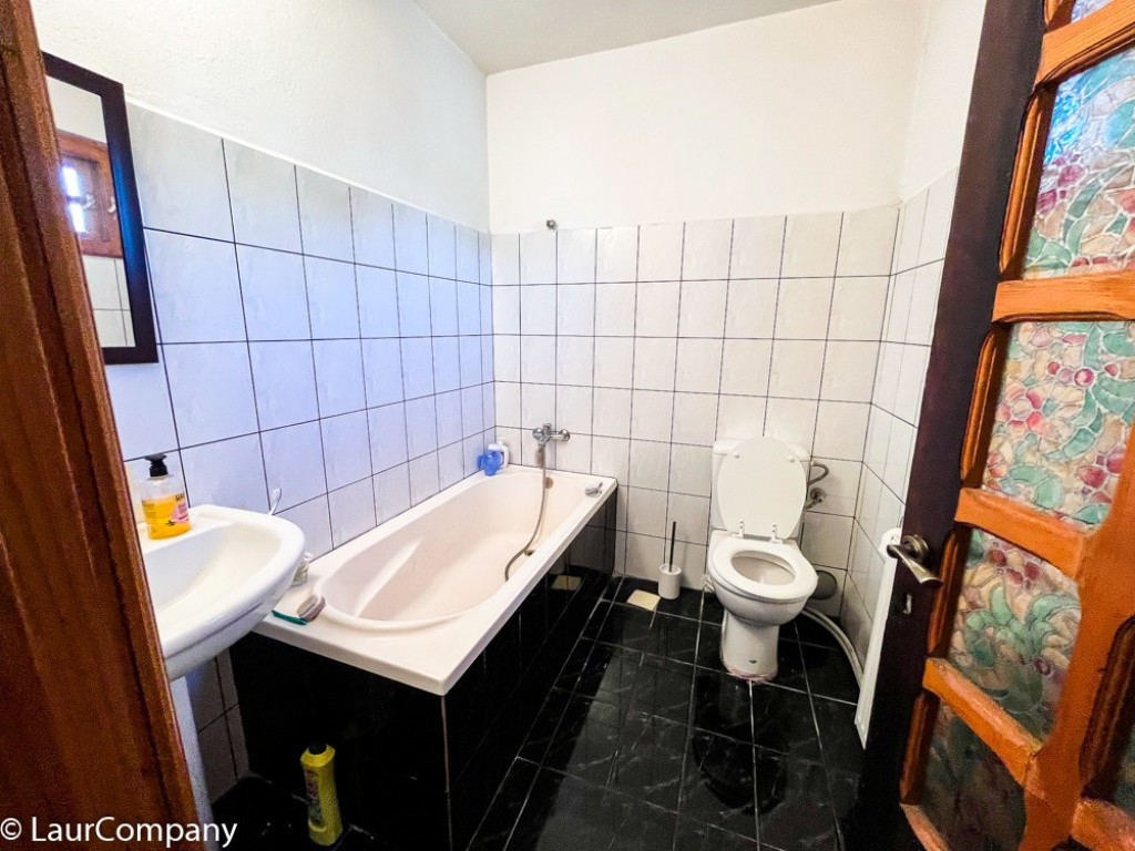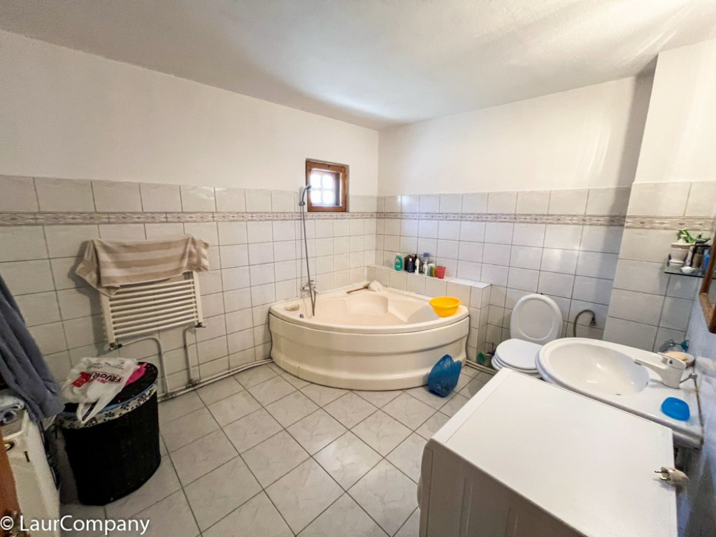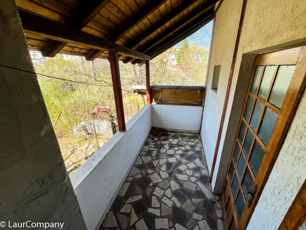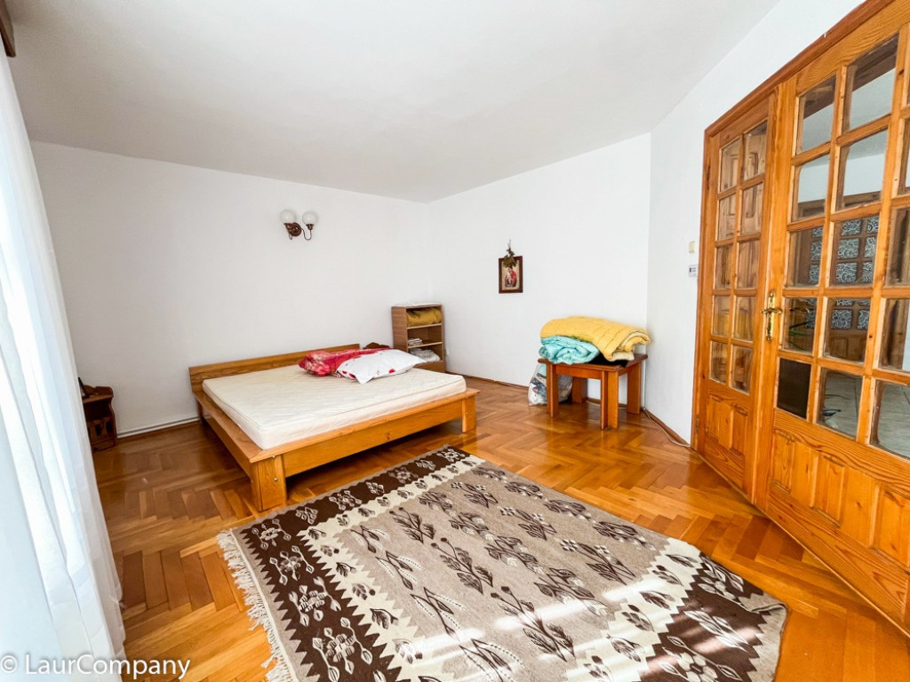 Etaj ; living , 2 dormitoare [ unul matrimonial ], 2 bai , bucatarie , camera servit masa , balcon .