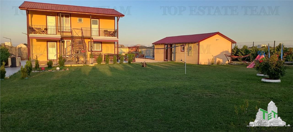Excelenta prin experienta! Afacere la cheie - clasificare 3 stele Va propunem spre vanzare - Vila La Toscana Costinesti - o vila construita in 2021 cu fundatie solida si materiale de calitate, aduse din Franta si Italia. Teren in proprietate 1000 mp, constructie P E in suprafata totala de 118 mp compartimentata in 4 studiouri (13 locuri de cazare), cu chicineta ,baie proprie si aer conditionat, izolate fiecare interior exterior, inclusiv fonic. La etaj fiecare camera are balcon cu vedere la mare La parter, o terasa inchisa cu folie si copertine cu vedere la gradina. Proprietatea dispune de sala fitness echipata cu aparate profesionale si sauna terapeutica cu infrarosu capacitate 2 -3 locuri. Bucatarie spatioasa si o toaleta, separat Karaoke cu videoproiector, o boxa muzicala si lumini de seara pentru ambient si dus solar. Gradina cu sistem de irigare si 100 de brazi ienupar inconjurata cu lumini solare, baldachin,hamac si jocuri pentru copii. Foisor in suprafata de 24 de mp, in curs de finalizare, cu autorizatie. 1 camera cu capacitate 2 locuri de cazare, pozitionata separat, pentru cei ce doresc intimitate, in curs de finalizare. Locatia Costinesti Schitu 10 minute de mare zona linistita. Se vinde mobilata si utilata Sistem de alarma si contract cu paza acreditata. Pentru orice alte detalii, va stau la dispozitie! ID intern: TET0016778.