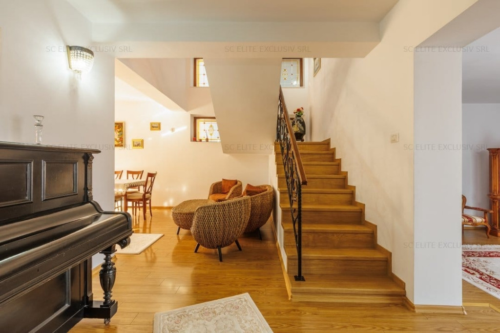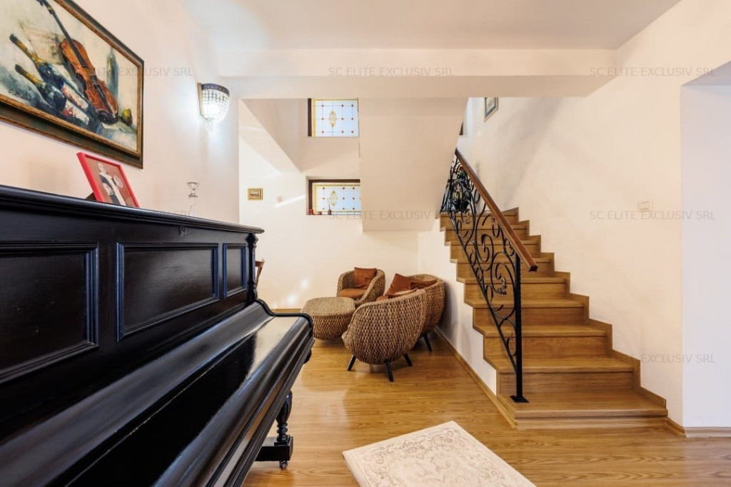 Localizată în cea mai atractiva zonă rezidențială din împrejurimile Constanței, cartierul Ovidiu sud, vila S+P+1+M se remarcă prin designul unic(nu mai există alta la fel în cartier), spatiile generoase, compartimentare de excepție, luminozitate deosebită, structura de rezistență solidă, superioară normativelor în vigoare(este construită din cadre de beton de 40 cm, și BCA de 38 cm), foarte bine izolată termic oferind un grad de confort ridicat atât vara cât și iarna (izolată la exterior cu polistiren de 10 cm iar la interior cu vată minerală) cu costuri reduse la gaze și energie.(punem la dispoziție facturile la utilități pentru confirmare). Vila a fost construită în 2004, renovată 2016(schimbat instalații electrice, sanitare) și 2024. Situată pe un teren de 473 m2 (front stradal 14 ml) cu o arie construită de 144 m2, suprafață construită 407 m2, suprafață utilă 306 m2 la care se adaugă un garaj de 16 m2 și o bucătărie de vara de 10 m2, are o curte liberă generoasă de 329 m2, din care 160 m2 în fața vilei și 169 m2 în spate, zona de intimitate, ambele spații cu grădină amenajată cu mult bun gust. Poziționată la 150 de metri de lacul Siutghiol nu prezintă riscul infiltrarii apei datorat panzei freatice ridicate. La 5 minute de mers pe jos vă puteți delecta cu o plimbare pe faleza amenajată și zona de interes Castrul Roman. Până la întrarea în Constanța sunt 6 km. Magazinele Kaufland 2.4 km și Profi, Penny la 2.2 km. Centrul comercial TOM la 4 km. În apropiere sunt scoli, grădinițe, spital. Universitatea Ovidiu la 6.5 km. Vila este compusa din: Subsol : beci de 12 m2 Parter : Living 32m2 cu ieșire pe terasă de 12m2, holuri 22m2, bucătărie open space cu sală servit masa 21m2 cu ieșire pe terasă acoperita de 18 m2, baie cu duș 4.5 m2, dressing pantofi 3 m2, spațiu tehnic(centrală) 1.5 m2, dormitor (birou) 11m2 Etaj : Hol 21 m2, dormitor matrimonial 21 m2 cu ieșire pe terasă acoperită de 16 m2, dormitor 16 m2 cu ieșire pe terasă de 9 m2, dormitor(în prezent utilizat camera hobby, home cinema) 16m2, baie cu jacuzzi 8 m2, dressing 11 m2 cu ieșire pe terasă de 12 m2. Mansardă : Dormitor 21m2, dormitor 12 m2, hol 24 m2 cu vedere superba la lacul Siutghiol, Stațiunea Mamaia, baie cu cabina duș 5.5 m2, birou 6 m2. Garajul de 16 m2 și bucătăria de vara de 10m2 se adaugă celor 306 m2 utili. Vila este versatila permițând amenajarea, mobilarea atât clasic cât și modern sau minimalist după gustul proprietarului. În prezent este amenajată clasic lux cu mobilier și electrocasnice de mare calitate. Vila se vinde nemobilată la prețul de 495000 euro Colaboram cu agenții, comision maxim 2%. Pentru cei interesați tel/whatsapp 0720704278.