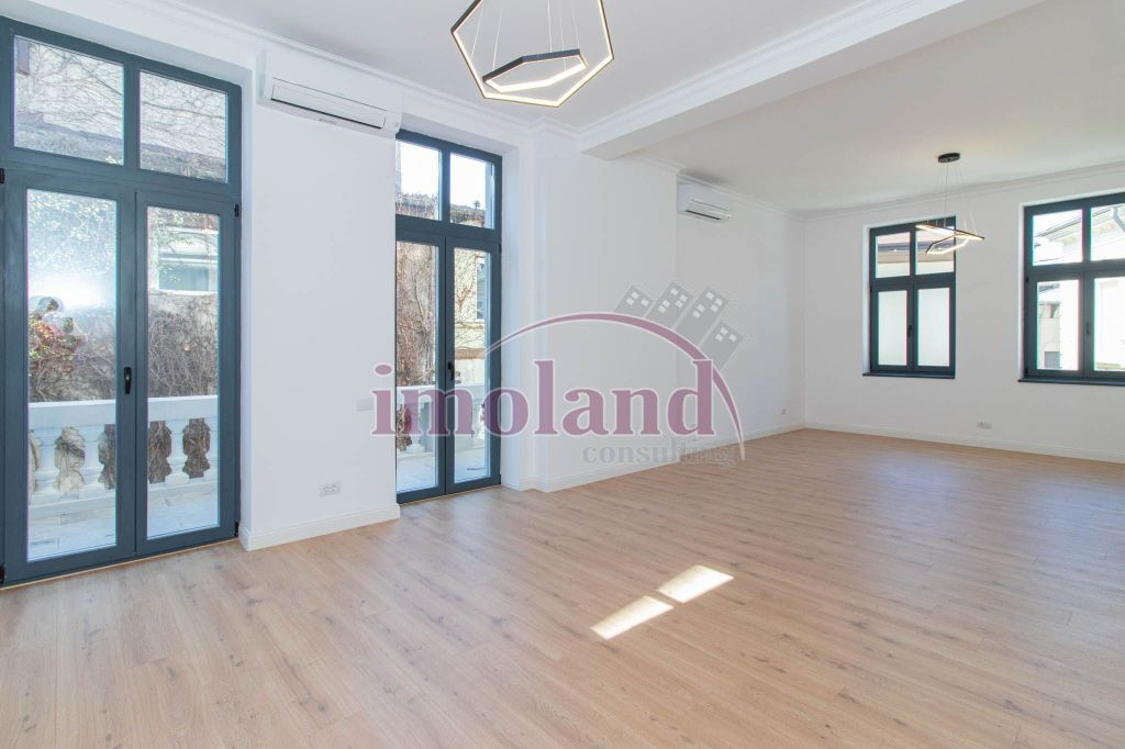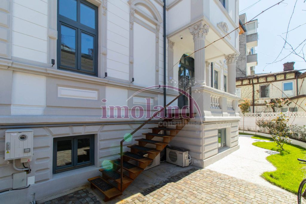 Va propunem la vanzare o proprietate de valoare rara in peisajul istoric al Bucurestiului situata in zona Romana - Dorobanti, pe o strada cu imobile de epoca, dar in imediata vecinatate a tumultului urban. Vila construita in 1897 a fost integral consolidata si refacuta in decursul anului 2023. Cei 390 mp utili sunt dispusi pe demisol, hoch-parter, etaj si mansarda: - demisolul inalt beneficiaza de o camera generoasa de 39 mp cu bolta superba din caramida, hol de 30 mp, bucatarie inchisa, grup sanitar si camera tehnica. Accesul se face separat prin laterala imobilului - parterul beneficiaza de 2 camere extrem de spatioase si de luminoase, una dintre ele cu acces la balcon. - scara frumoasa in forma de melc, imbracata in lemn, duce catre etaj (cu compartimentare similara cu cea de la parter, avand in plus o baie), si catre - mansarda cu o suprafata utila de 43 mp, baie si o terasa intima cu vedere splendida catre zona rezidentiala. Imobil sustenabil cu panouri fotovoltaice montate pe acoperis. Imobilul este pretabil atat pentru resedinta, cat si pentru birou de avocatura / arhitectura, cabinet notarial, clinica de estetica, sau ca investitie, proprietatea fiind momentan inchiriata cu destinatie office pana in septembrie 2025. Un loc parcare este disponibil in curte si exista posibilitate de parcare in fata imobilului pentru inca doua masini. Zona este una exceptionala, la 200 m de Calea Victoriei si de Bd. Lascar Catargiu, la cativa pasi de Bd. Dacia si la 5 minute de mers pe jos de metroul Piata Romana.