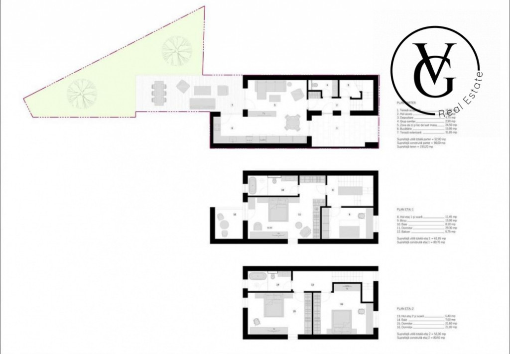 VG Real Estate va propune spre vanzare vila YIN, situata în inima Constanței, de unde aveți acces rapid la școli, grădinițe, spitale și centre comerciale. Vila YIN este o vilă P+2 cu fațadă antracit, gândită pentru o familie modernă care își dorește spațiu și un stil de viață contemporan. Compartimentare practică pe 3 nivele (251 mp construiți): Parter (90 mp): Zonă de zi spațioasă cu loc de masă, bucătărie, grup sanitar și două terase. Etaj 1 (80,7 mp): Dormitor matrimonial, birou și un balcon. Etaj 2 (80,5 mp): Două dormitoare și o baie. Proprietatea include o curte privată de peste 103 mp, un spațiu versatil ce așteaptă să fie transformat în zona dumneavoastră preferată de relaxare: un loc de joacă, o grădină sau o terasă de vară. Specificații tehnice: Ziduri solide: BCA de 30 cm, pentru rezistență și confort termic. Izolație modernă: Sistem de termoizolație cu eficiență termică optimizată. Tâmplărie de calitate: Ferestre cu profil PVC cu 6 camere, ce asigură izolație fonică și termică excelentă și protecție UV. Ușă de acces sigură: Ușă metalică, cu design modern și siguranță sporită. Vila Yin se predă la stadiul "la alb". Este șansa dumneavoastră de a personaliza fiecare detaliu și de a crea casa pe care v-ați imaginat-o. Vila YIN este despre un stil de viață echilibrat. Alegând Vila YIN, vă asigurați prezența și spațiul unei vieți dinamice, având mereu la dispoziție liniștea și intimitatea unui cămin adevărat. O locuinta pentru o viață împlinită. Pentru detalii suploimentare si pentru vizionari, nu ezitati sa ma contactati. 0743.188.268 - Claudia Cheasca I Van Gulik Real Estate. Id intern: P145203