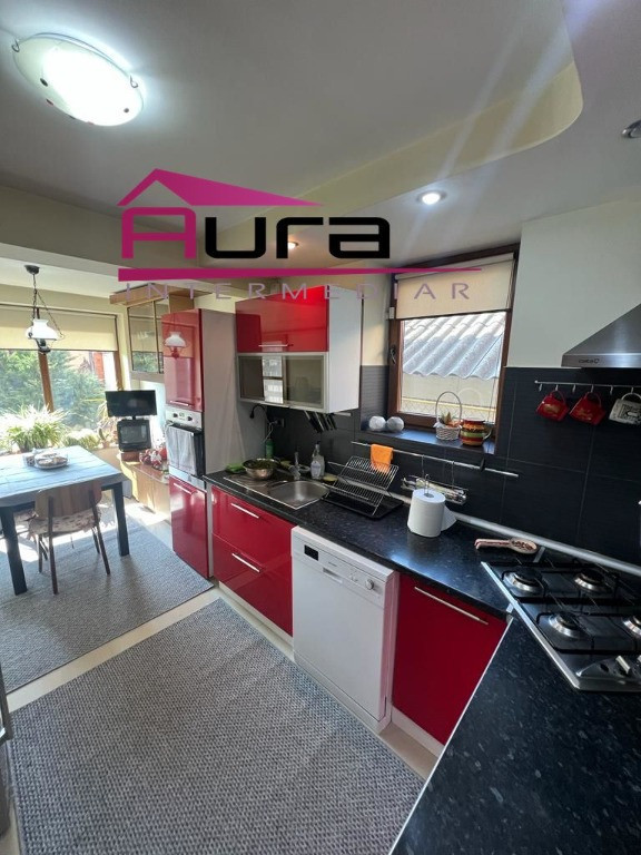 Agentia Imobiliara Aura Intermediar vinde Vila din BCA P+E+M,constructie noua,zona centrala ,decomandata,suprafata totala 300 mp,amprenta la sol 104mp,dechidere21ml.Parterul este compus din Living ,Baie,Garaj,Beci.Etajul este compus din 3 dormitoare mari,hol.2 balcoane,dresing.Mansarda este compusa din living,baie,dormitor,camera de zi,terasa,centrala gaz,incalzire in pardoseala la parter,panou solar pentru apa calda,izolata interior exterior.Pret 450000 euro,tel.0747698898