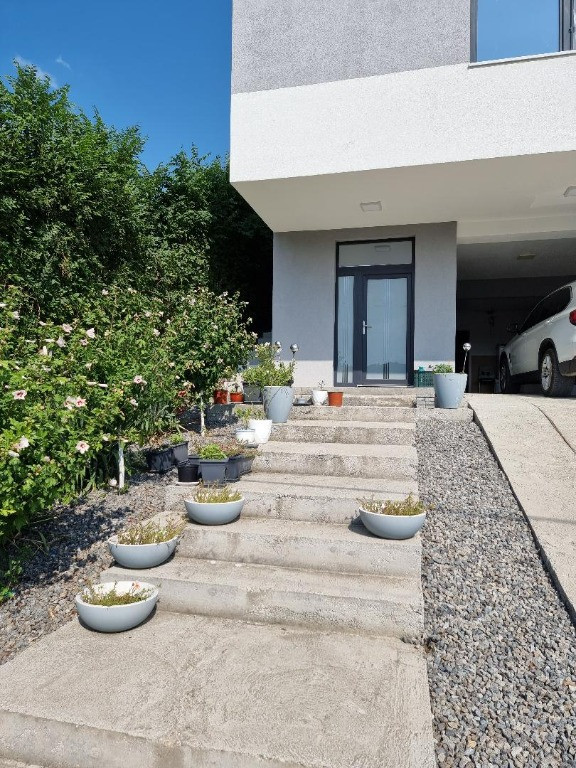 Vand vila deosebita in zona lac Hanul Pescarilor, constructie 2019, D+P+E, vila mediteraneana , cu terasa circulabila , SC-370 , constructie din caramida cemacon de 30 cu izolatie de polistiren de 15, cu panorama deosebita .Vila se compune la demisol din 2 garaje , sala cazan si o baie de serviciu, la parter pe 200mp , living , bucatarie , loc de luat masa , dormitor matrimonial cu baie si dressing , inca o baie cu dus , si un birou .La etaj 2 dormitoare fiecare cu baie proprie si o terasa mare de 130 mp panoramica , acoperis mediteranean circulabil , teren 1375 mp curent trifazic . Incalzire in pardoseala in intreg imobilul , aer conditionat , finisaje lux , complet mobilata , dotata , incalzire cu pompa de caldura Daikin de 16 kw, sistem alarma , camere video , imediat ocupabila .Pret 398.000 Euro neg
