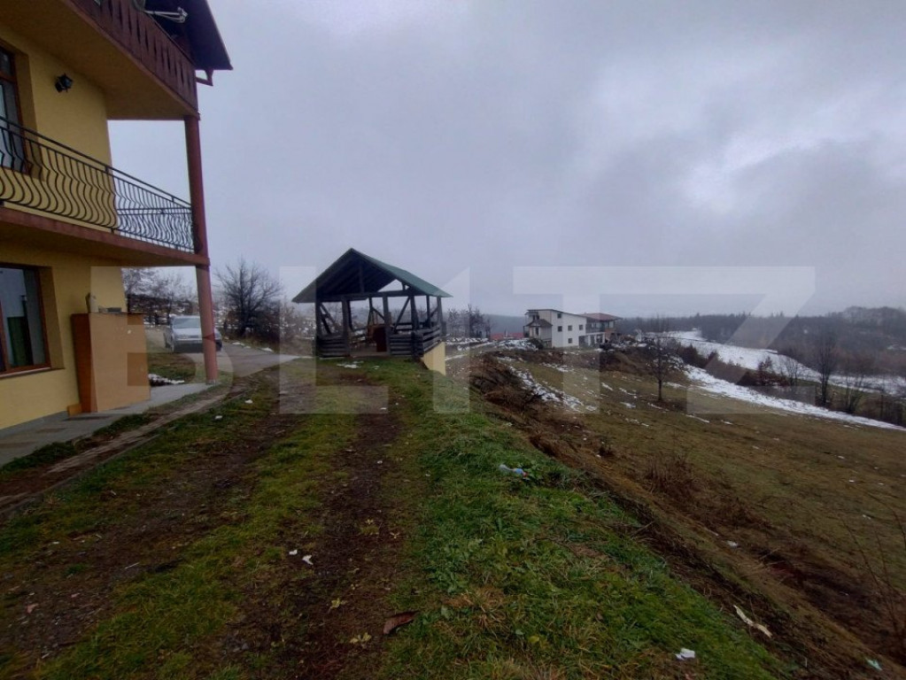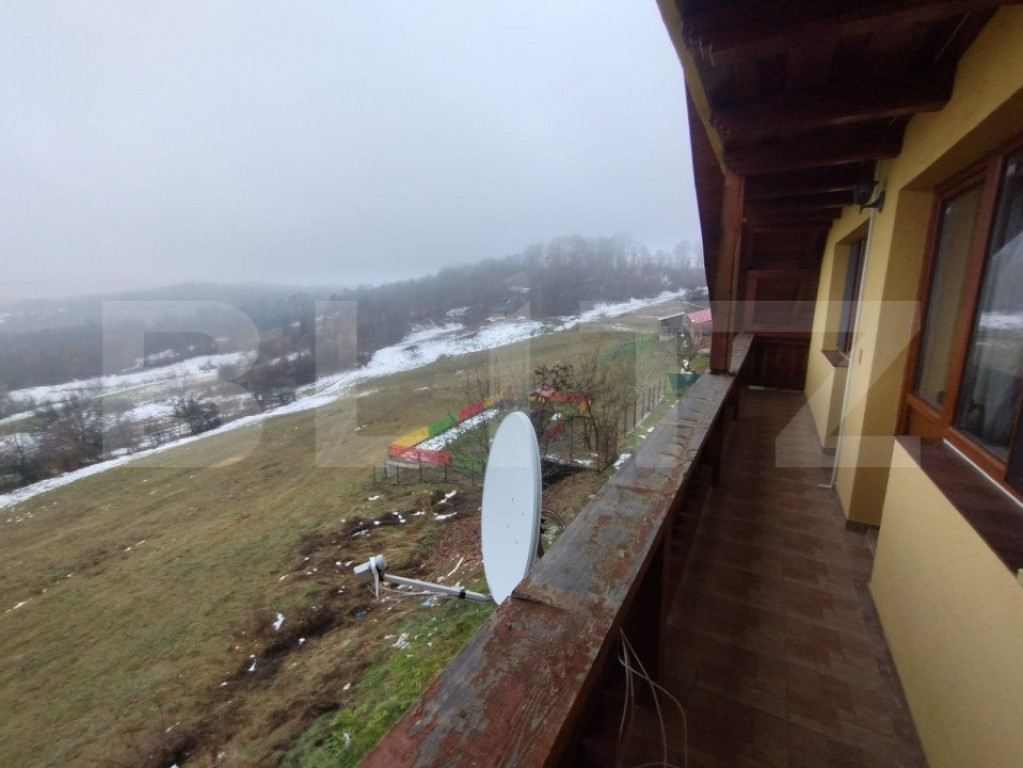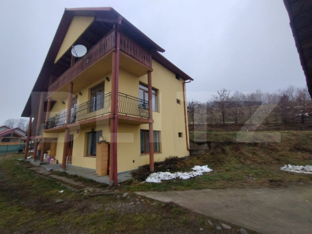 BLITZ propune spre vanzare pensiune agroturistica (cabana, casa) P+1E+M, cu o suprafata construita de 465 mp,(410 mp utili) Suprafata de teren aferenta: 3500 mp. Anexe: 2 terase, gril grătar, garaj, parcare betonata. Cabana dispune de 3 camere matrimoniale cu băi proprii cu duș și balcoane , încălzire pe lemne cu centrala. De asemenea mai dispune de o cameră de aprox. 40 mp cu 4 paturi etajate (8 persoane) și 3 paturi single simple. Spații comune: living si spatiu de servirea mesei, acces la bucătărie. Terasa-balcon, 1 foișor pentru luat masa in exterior cu panoramă deosebită, 1 foișor cu leagăn din lemn pentru relaxare in aer liber. Pensiunea dispune de parcare spatioasa 300 mp și teren cu o panoramă deosebită. În apropiere de pădure cu posibilitate de a face trasee montane pe jos, cu biciclete sau ATV uri. Un BARBEQ spațios dotat cu grătar, cuptor cu pizza, sobă cu loc de ceaun. Cabana este dotată cu senzori de fum si sistem de incendiu și alarmă. Pentru detali suplimentare sau programarea unei vizionari, nu ezitati sa ne contactati!! Cod ofertă / ID BLITZ: P136824 Id intern: P136824