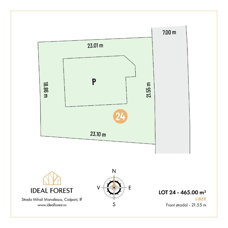 Vă oferim o oportunitate unică de investiție pe un teren situat în Izvorani,cu deschidere la padurea Snagov,cu proiect de casa pe parter. Suprafață totala a terenului este de de 21774mp. Acesta este parcelat in 35 de loturi. Loturile au suprafete cuprinse intre 407 si 730 mp, avand destinatia de teren curti constructii. Oferim spre vanzare lot 24 in suprafata de 465mp, front stradal 21,55m avand proiect si autorizatie pt casa P/P+M. Pretul afisat include canalizare si apa, lucrari efectuate la fiecare parcela doar in incinta complexului, pana la poarta si drumul la nivel de piatra concasata. Acest teren are un potențial extraordinar, oferind posibilitatea unor constructii intr-o zona linistita,in continua dezvoltare, in jur aflandu-se la momentul actual si alte proprietati. Toate utilitatile la strada principala (curent,gaze, canalizare ) făcând din acesta o alegere excelentă pentru viitoarea dvs. locuință Cu o locație excelentă , este pregătit pentru a deveni baza unei investiții de succes. Pentru vizionari, oferte si alte detalii, puteti accesa site-ul .idealforest.ro sau telefonic.