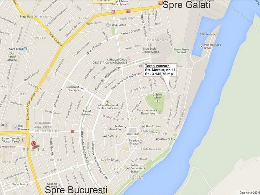 Teren intravilan Strada Mercur, nr. 11, in spatele Gradinii publice, zona centrala Suprafata - 3.145 mp Deschidere - 35 ml la str. Mare si 81.65 ml la Vadul Belvedere