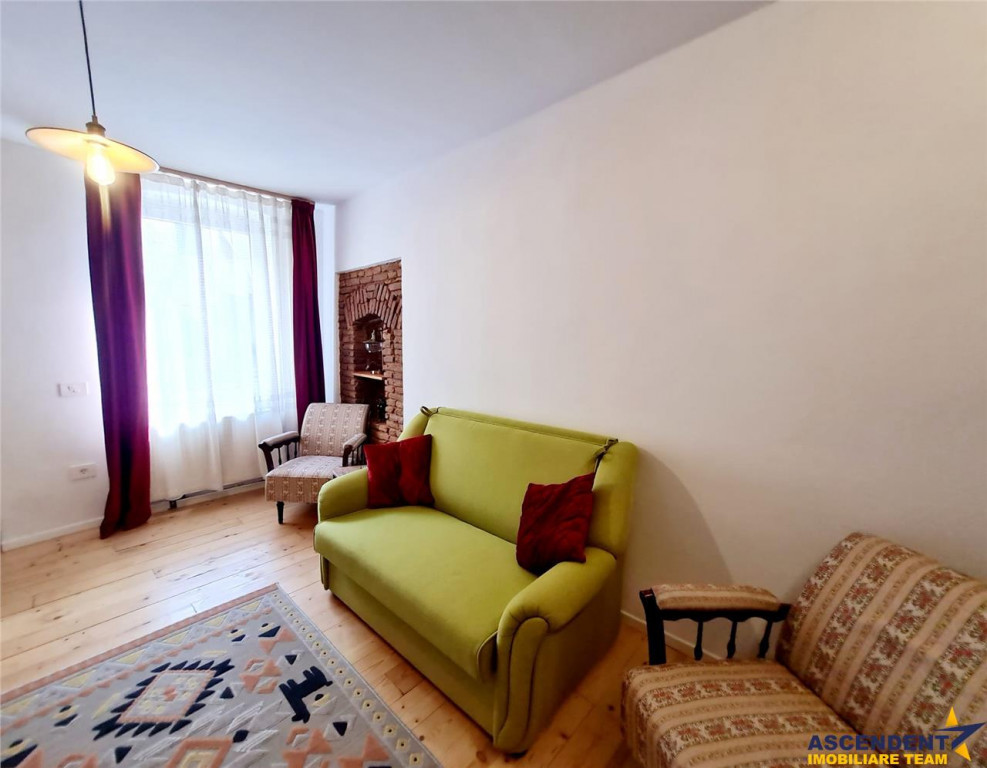 Comision cumparator: 2% TVA, din valoarea de tranzactionare. Ascendent Imobiliare va prezinta un apartament pozitionat excelent in zona centrala a orasului Brasov. Proprietatea complet renovata are o nota vintage, data de designul de interior, astfel incat se armonizeaza perfect cu cladirile istorice ale centrului Brasov. Cu o structura semidecomandata, avem urmatoarea configuratie: - living cu zona de dinning, hol, dormitor matrimonial, bucatarie micuta complet echipata, baie cu cada Este o proprietate cocheta, pe un nivel inalt de parter, care poate fi preluata imediat pe segmentul investitional sau in care va puteti muta rapid fara sa necesite renovari. Rezidenta cu sistem de alarma pe senzori. Curtea este comuna, dar extrem de generoasa si spatioasa. Beneficiati de loc de parcare in curtea interioara. Are posibilitatea de extindere mansarda. Proprietatea se preda complet mobilata si utilta. Accesul este facil catre toate punctele de interes, statie RAT in proximitate, la 5 minute distanta de centrul istoric. Forma de plata: achizitie cu plata cash(prin transfer bancar) Consultant specializat pe oferta: doamna Gilda Georgescu Tel/Whapp 0722 807 623 Detalii, fotografii suplimentare si alte oferte similare exclusive: www.ascendentimobiliare.ro