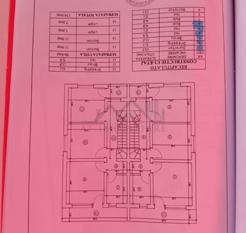 -Etaj = 3 dormitoare, baie, hol mare, doua balcoane.