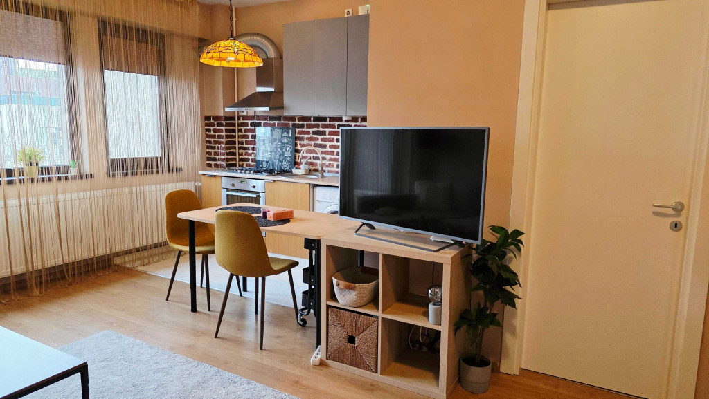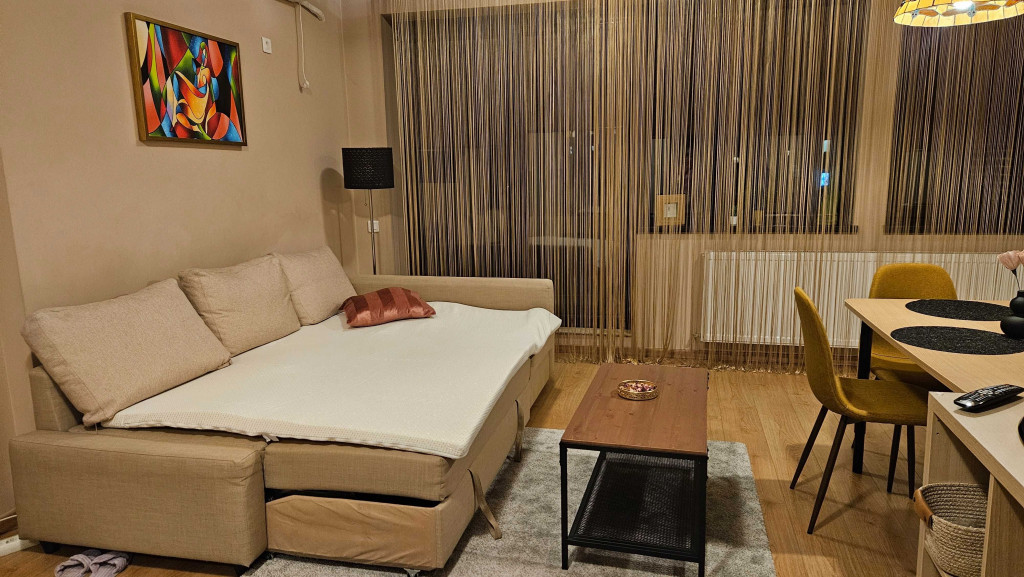 garsoniera, foarte curata, cocheta si foarte placut mobilata. Este in imobil nou. Dotata complet: aer conditionat, frigider, cuptor electric, plita, hota, masina spalat, smart Tv. .Canapea cu topper ce se transforma intr-un pat confortabil. Este situata practic in spatele blocurilor de la Piata Alba Iulia - 240 m / 3 minute de mers pe jos pana la terasele din rond. Este pentru nefumatori, nu sunt permise animale de companie de niciun fel. Se insista pe curatenie. Doar pentru chirias curat, peste 28-30 de ani, fara studenti, o singura persoana poate locui confortabil acolo.