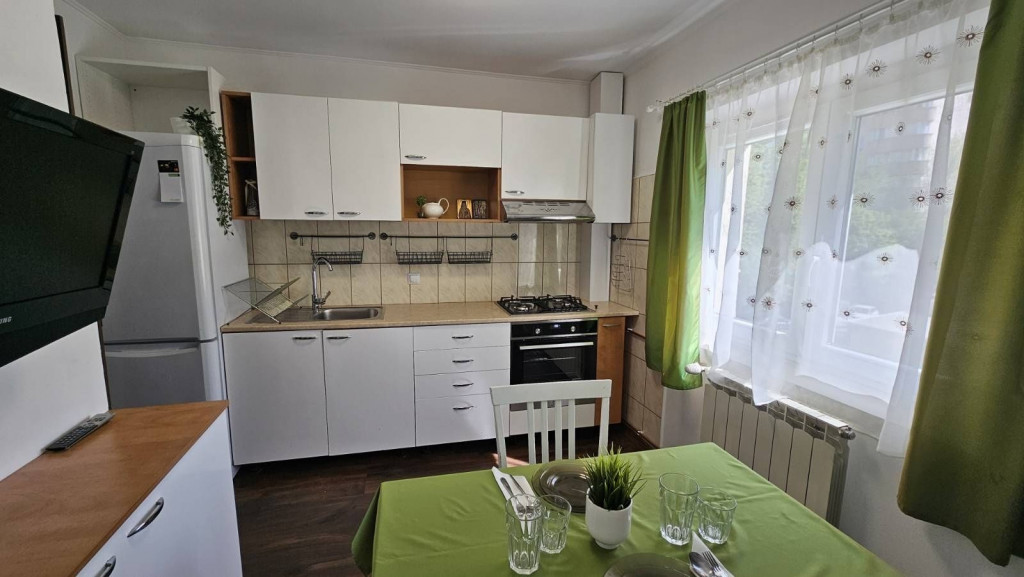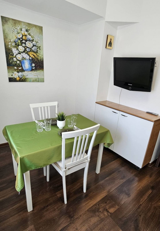 spre închiriere pe termen lung o Garsoniera proaspăt renovata, Iuminoasă, spațioasă și primitoare. Lângă Mall Vitan, acces imediat STB. Etaj 2 - scara curata, bloc mixt recent reabilitatat, lift modernizat. Camera mobilata cu pat matrimonial și canapea extensibila, TV si aer condiționat. Bucatarie spațioasă cu zona de luat masa si TV. Plita, cuptorul, hota si frigiderul sunt noi. Baie cu cada și masina de spalat rufe. Balcon spațios cu zona de depozitare, uscător de rufe, masa de călcat. o persoană serioasă (sau cuplu), nefumatoare si fără animale de companie. Preț: 450€