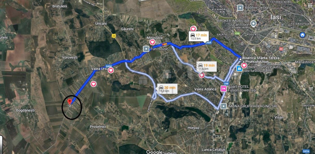 Compania imobiliara AFImobiliare va propune spre vanzare un teren situat in Vorovesti - Valea Ursului - com. Miroslava, cu deschidere 46ml la DJ248A.