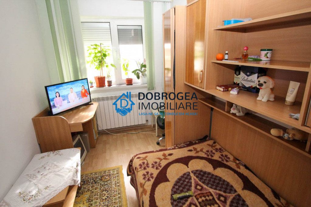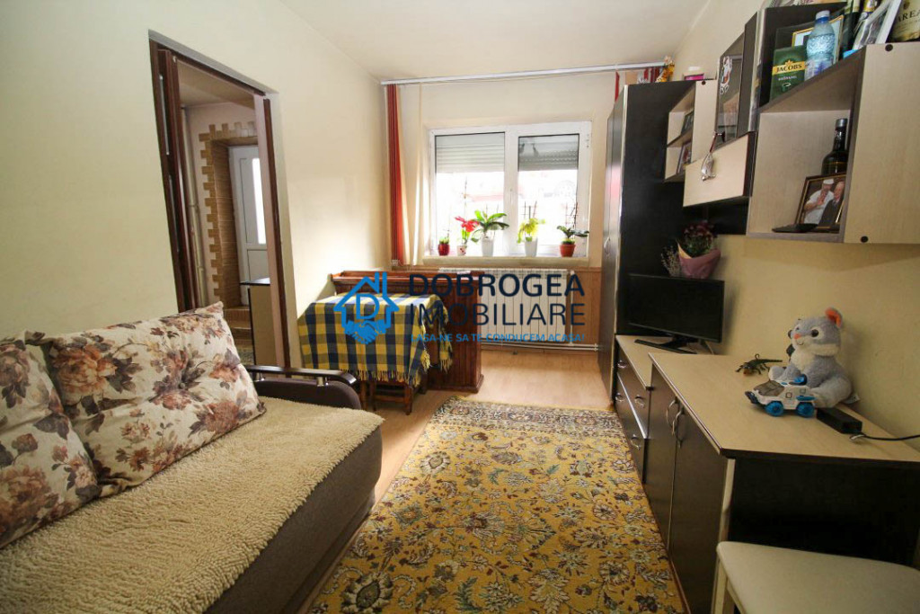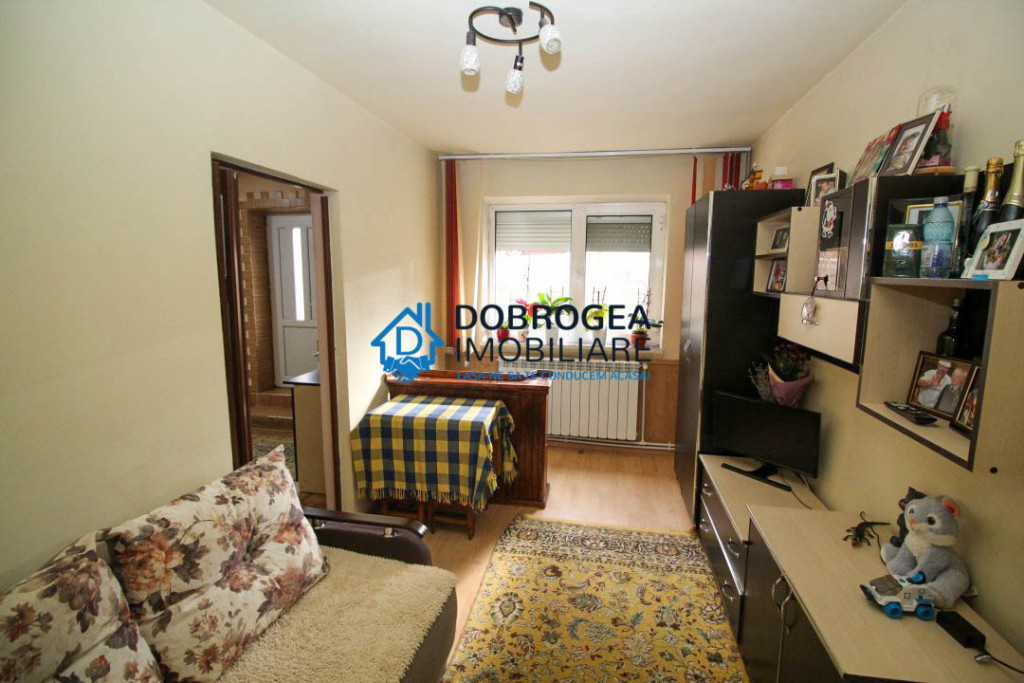 Agentia Dobrogea Imobiliare va prezinta spre vanzare un apartament cu 3 camere, semidecomandat, situat in zona Big. Apartamentu se afla la parter intr-un bloc cu 4 etaje si dispune de o suprafata utila de 50 mp. Imobilul dispune de imbunatatiri precum: gresie, faianta, parchet, usi interioare, izolat exterior. Incalzirea se face prin centrala termica pe gaz. Va așteptam la vizionare! Ne puteți vizita la sediul nostru situat pe str. Pacii, nr. 6 (la parterul hotelului Select) pentru consultanta gratuita Pentru mai multe oferte vizitați site-ul www.Dobrogea-Imobiliare.ro sau pagina https://www.facebook.com/agentia.dobrogea.9 Id intern: P1567