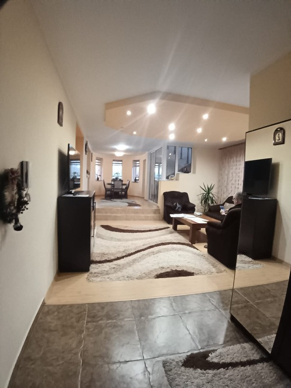 Zona Dumbravei, casa finisata cu etaj, compusa din :living, 2 bucatarii, 5 dormitoare, 2 bai,terasa, garaj, bucatarie de vara cu barbeque Proprietatea se intinde pe o suprafata generoasa de 5500mp si dispune de o curte superba, perfecta pt. relaxare si unde te poti bucura si de intimitate. Casa se preda complet mobilata si utilata. pret 490000E Tel. 0740779094 Agentia imobiliara Iaka