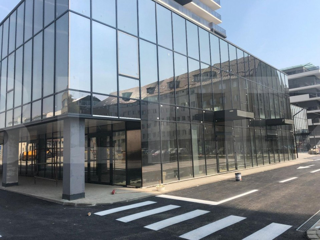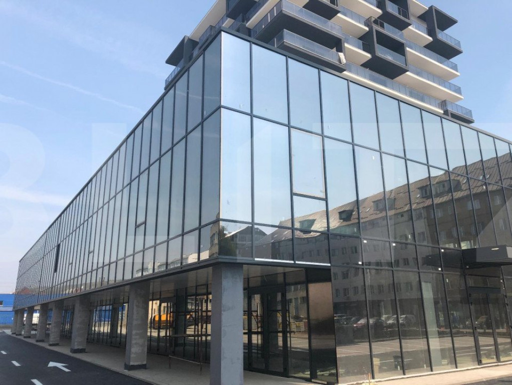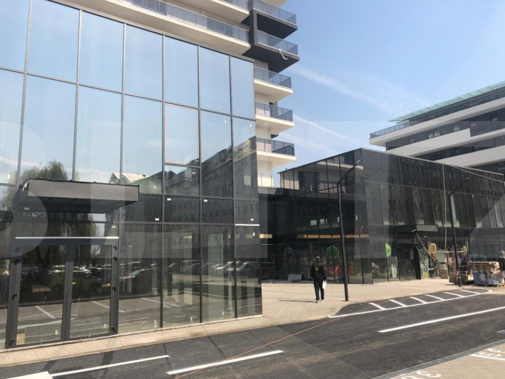 Spatiu comercial in complex comercial cu 4000 de mp totali. Suprafata disponibila este de 168 de mp, tip open space, cu vitrina si acces la nivelul trotuarului. Spatiul de preda la semifinisat cu utilitati pe pozitie. De asemenea , in pretul afisat sunt incluse 5 locuri de parcare dedicate. Complexul gazuieste retaileri alimentari de renume, show-room de instalatii si echipamente, sala de fitness, farmacie, show room mobila, cafenea si altele.