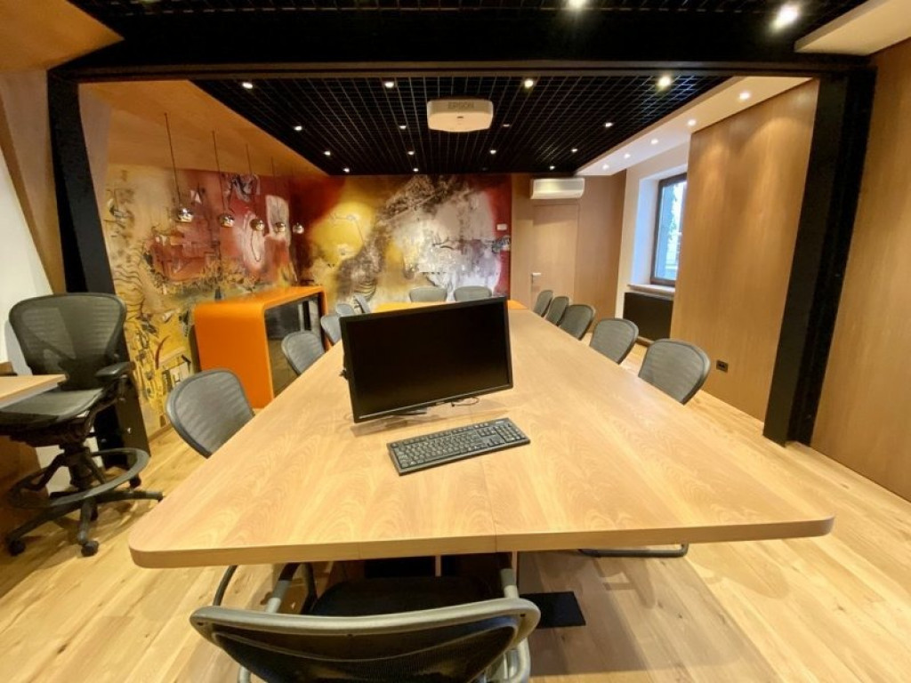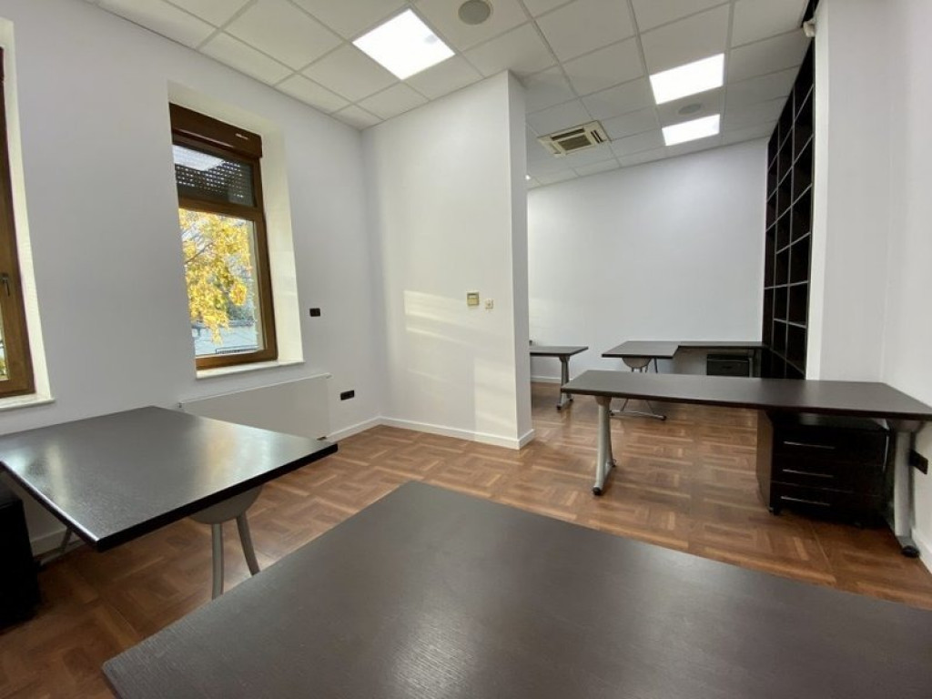 Zona Pache Protopopescu imobil reprezentativ 10 camere disponibil pentru inchirere. Detalii - Vila are o suprafata utila de 380 mp, dispusa pe S+P+E+M, la care se adauga si o terasa de 30 mp. Curtea libera este de 50 mp. Vila dispune de centrala termica proprie, aer conditionat, alarma, sistem monitorizare video, interfon, control acces. Descriere pe nivel: Demisol 86 mp : 3 camere birou (pentru 7 persoane), 1 baie, 1 hol(camera servere), camera tehnica(centrala termina+boiler) Parter 95 mp : 3 camere birou (pentru 8 persoane), 1 hol/receptie, 1 baie, 1 camera arhiva/depozitare, 1 camera depozit. Etaj 102 mp: 1 camera birou director, 1 camera birou (2 persoane), 1 camera pentru sedinte/conferinte dotata cu o masa pentru 16-18 persoane, proiector si ecran de proiectie, loc de luat masa, vitrina frigorifica/bar, 1 camera bucatarie/chicineta, 1 rup sanitr, 1 camera spatiu de depozitare cu masina de spalat. Mansarda: 98 mp, Open space de 84 mp, grup sanitar si acces catre terasa Terasa: 30 mp