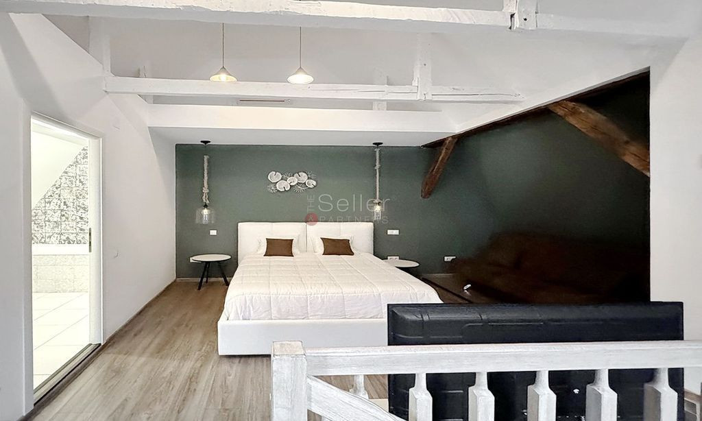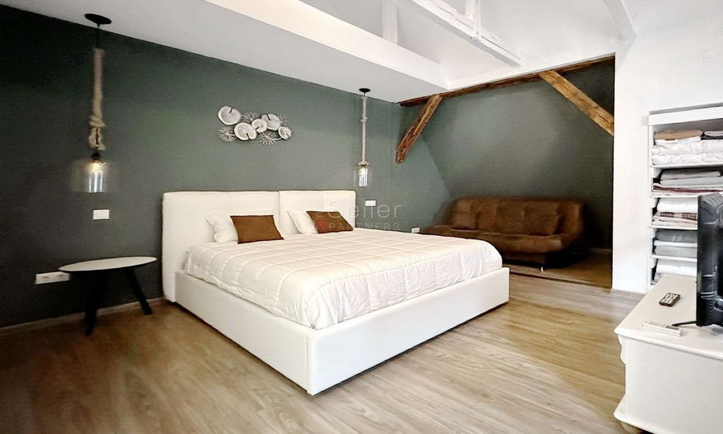 Ati accesat un imobil situat in zona Centrului Istoric. LOCALIZARE: Proprietatea este pozitionata la cativa pasi distanta de Piata Sfatului si de cele mai importante obiective turistice, cum ar fi: Biserica Neagra, Strada Sforii, Poarta Ecaterinei etc.. COMPARTIMENTARE: Imobilul este dispus pe P+M, cu urmatoarea compartimentare: PARTER: - Holul de acces; - Living-ul, care beneficiaza de o suprafata generoasa; - Bucataria, aceasta fiind mobilata si utilata complet; - Baia, care este dotata cu aerisire naturala si dus; MANSARDA: - Dormitorul, care cuprinde atat zona de dormit, cat si o zona de relaxare; - Baia, aceasta fiind dotata cu cada. DOTARI: Proprietatea detine: - centrala termica; - tamplarie PVC; - canalizare, apa, energie electrica, gaz; - doua bai. Tranzactionarea proprietatii se va face cu mobilierul aferent prezentei ofertari. IMPREJURIMI: Proprietatea este pozitionata in Centrul Istoric, intr-o zona de interes, usor accesibila. Accesul pana in Piata Sfatului se face in cca. 2 min. de mers pe jos.