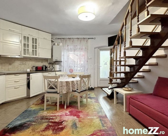LOCALIZARE: Acest imobil este situat in zona centrala a Brasovului, la mica distanta de Biserica Neagra, Pata Sfatului si Srada Sforii. COMPARTIMENTARE: Apartamentul este situat intr-un imobil cu regim de inaltime scazut, P+1+M dispus pe 4 camere, dupa cum urmeaza: ETAJ: - Accesul in apartament se face prin lving, acesta deservind toate incaperile; - Dormitorul matrimonial, detinand suprafete vitrate mari, cu acces la baia proprie: - Bucataria inchisa, complet mobilata si utilata, cu acces la tearasa; - Casa scarii; MANSARDA: - Zona mezanin; - Living-ul, cu vedere in spatele casei; - Dressing; - Dormitorul, beneficiind de ferestre tip velux si baie cu aerisire naturala; DOTARI: - centrala termica; - soba functionala; - tearasa cu zona de barbeque. AVANTAJE: - numeroase obiective turistice in apropiere; - proximitate fata de mijloacele de transport in comun; - zona verde si spatii de joaca amenajate in apropiere; IMPREJURIMI: Apartamentul este situat intr-o zona de case, accesul catre acesta fiind unul facil. Accesul pietonal, pana zona de centru a orasului, se poate face in cca. 1 minut. Tranzactionarea proprietatii se va face cu mobilierul aferent prezentei ofertari. NOTA: Perioada Minima Inchiriere Acceptata: 12 luni; Locatorul nu accepta animale de companie. Comision de intermediere 50%+TVA. Informatiile prezentate reflecta situatia reala a proprietatii, fara a constitui o oferta contractuala. Aceste date au fost obtinute verbal, de la titularul de drept al imobilului. Structura acestei prezentari nu poate fi reprodusa, fara acordul scris al The Seller and Partners. Nu se accepta achizitionarea prin accesarea unui credit bancar.
